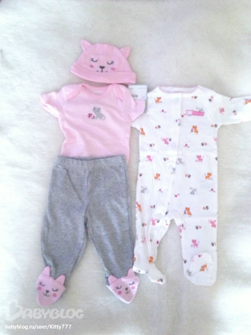 Все - обалденное))))Я - так с Картерса и не заказала...руки не дошли)))Все очень красивое...Надо будет на 74-ый размер там заказывать (до этого - все куплено уже).Кошечка - офигенная, сладкая такая, лапочка))))