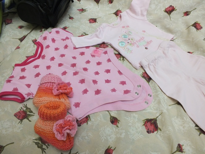 ) А рядышком первые связанные мною пинетки) Да и вообще - это первая связанная мною вещь) Да, может они и кривоваты, но мне очень нравятся) Меня одобрительно пнули)