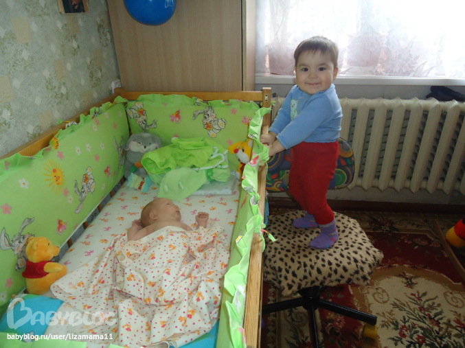 вот теперь осваиваемся, с двумя детишками, ттт, доча очень радуется, ставит стул к кроватке, сморит и улыбается, на плач первая бежит, и зовет меня, МАМА,МАМА- ДАНЯ!