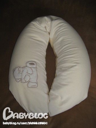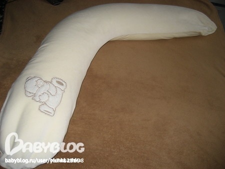 У меня с шариками внутри, полукругом, длина 160 см, со съемной наволочкой - PLANTEX Comfy Big, в Москве стоит 1200-1300 рублей. Очень удобно, просто спасение, сплю обе беременности с третьего месяца только с ней. Еще ее плюс в том, что не нужен будет позиционер для ребенка. После кормлений, чтобы не было срыгиваний, клала малыша исключительно на бочок, а чтобы не переворачивался, подкладывала под спинку подушку.