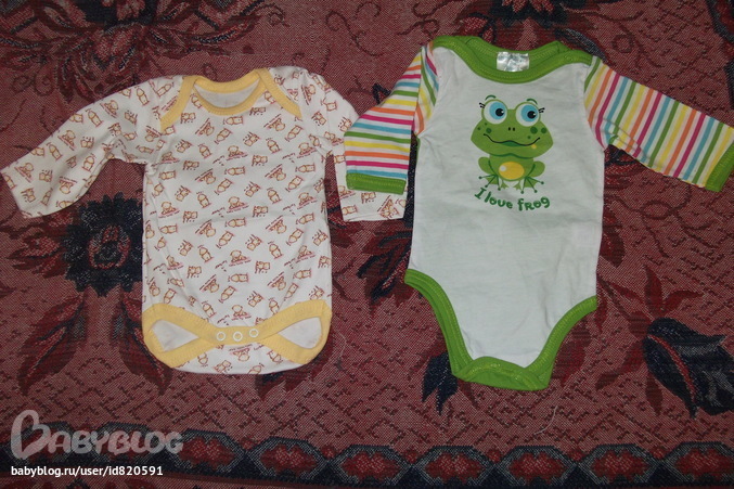 Мы тоже такой купили, с лягушечками (у нас бодик, а ползуночки я коротенькие взяла, без застежек)