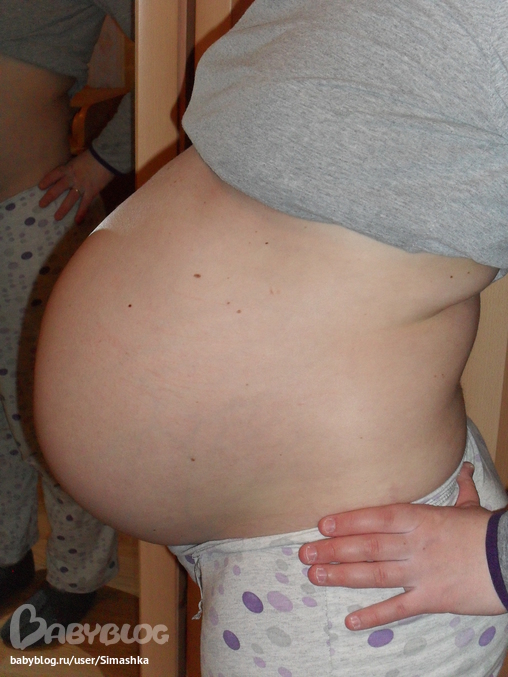 Пупок натянулся так... У меня операция была классе в 8-ом по поводу пупочной грыжи - такое ощущение, что шрамик лопнет прямо. Ну и пузо чешется, конечно, не описать как. Мажу его, мажу, мажу. Ужасно боюсь растяжек. Пока вроде бы их нету.Только расчесы....