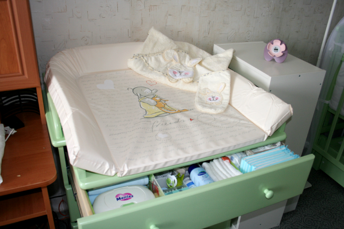 Пеленальный матрас Bebe Jou Lux. Изначально я планировала купить тканевый с бортами-колбасками фирмы Сдобина. но со временем решила, что тканевый матрас - это не разумно, одно пятно и нужно все стирать. Так же решила учесть опыт знакомой многодетной мамы и купить сразу дорогой, качественный матрас, чтобы не переплачивать за десяток лопнувших и потрескавшихся. Результат меня порадовал: очень мягонький, тепленький, отлично вместился на наш комод.