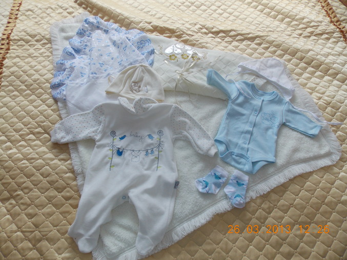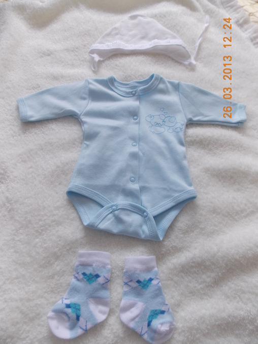 Сначала, значит, планируем одеться во всё лёгенькое,х\б: бодик, носочки да чепчик
