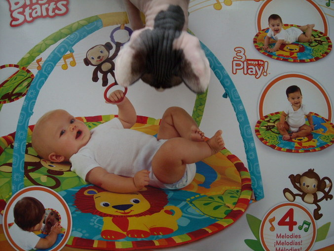 В пятницу на работе устроила небольшое "прощание" перед уходом в отпуск) коллеги подарили замечательные подарки: развивающий коврик и мобиль на кроватку (кошка оценила