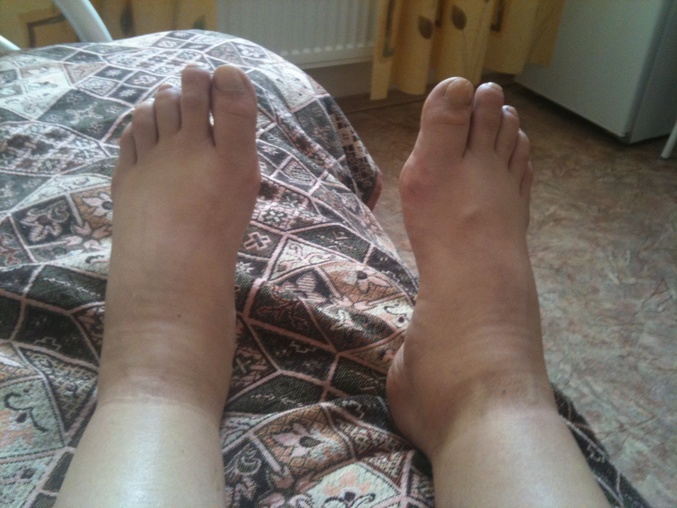 Отеки, гестозпривет, девочки. хочу немножко поныть:) знаю что ничего кроме родов мне не поможет, но может хоть на душе станет легче... я ужасно отекла, во мне воды наверно еоколо 15 кг уде, общая прибавка 22. страшные цыфры:(((( но зато потом худеть будет проще:)) положили меня в патологию, но от капельниц стало только хуже, прибавка за сутки 3 кг!!!! фотки поих слонячих ножек под катом (слабонервным не смотреть:)) ) я вся примерно как мои ноги, отекло и лицо и тело и даже натянутый живот.... ну и внутри меня думаю картина не лучше...
