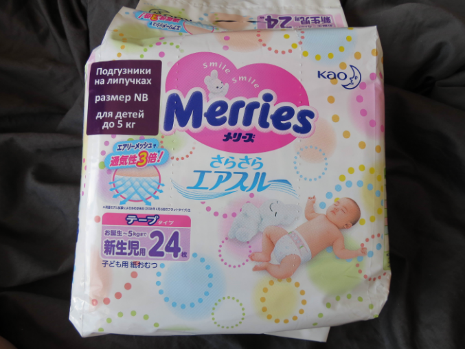 - Подгузники Merries. Купила маленькую упаковку, возьму с собой в р/д на пробу. Понравится - отпишу мужу прямо из р/д, чтобы большую упаковку покупал.