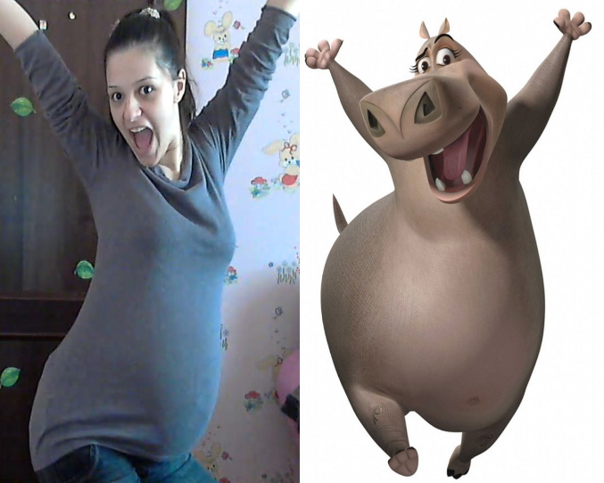 с бегемотиком конечно классно)))но вы совсем не похожи))))стройняшка вы)))видела животики и побольше)))))))