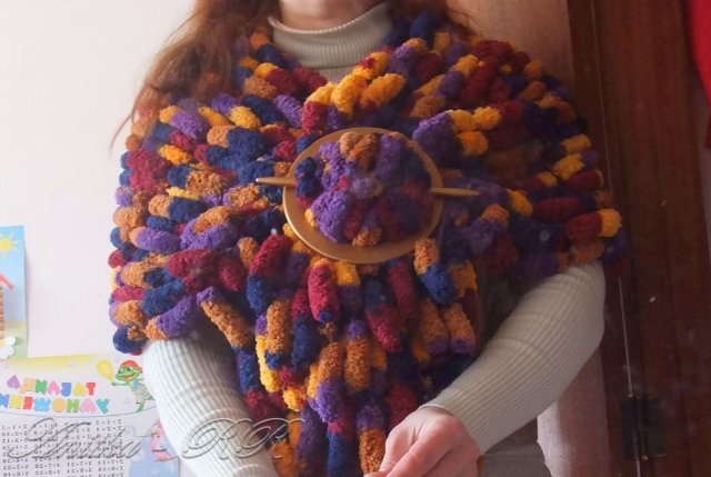 Видео нашла в инете но не сохранила, поищите в поисковике " плед из помпонов"