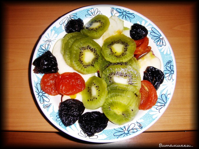 Яблочко, киви, курага и чернослив ))))))))) и желудок забит... и вкусно, и полезно!