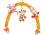 У нас коврик развивающий, а там и игрушки есть все отстегивается, так мы их и изпользуем пока, даже когда не в нем лежим.