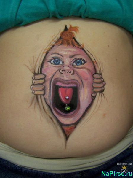не знаю почему,но прям ооочень не нравятся подобные картинки на животиках. Я против.причину не знаю) бесит)
