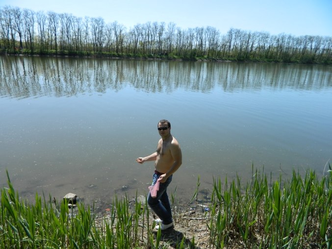 Эт мой дюбимый муж пытается прикормитьрыбу, порыбачить не удалось...