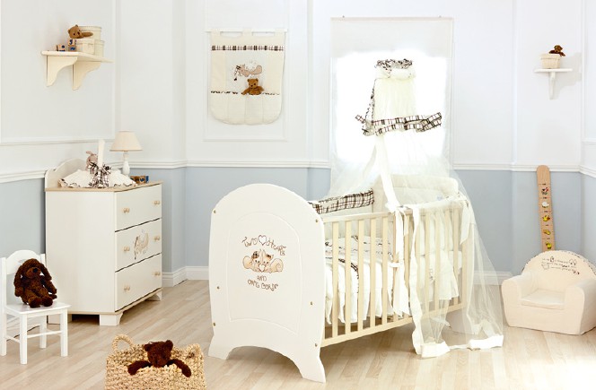 Хороша, не спорю, но стоит 400 Евро! (примерно 16 тыс. рублей). Муж сказал, что он тогда лучше сам сделает. Ну а мама выбирала скорее кроватку под белье, уж очень ей постельное бежевое белье с мишками понравилось)))
