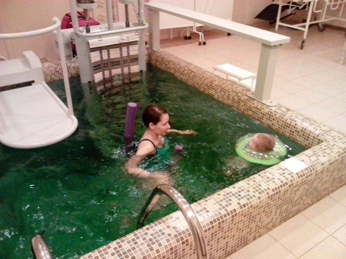 Ходим мы с Сашулькой в бассейн))))Кто нас знает...и почтывает...это мы больше для Сашульки...как вид реабилитации...аквареабилитация)))))Очеень нравится))))Для Сашульки новые совсем ощущения....расслабляется и пытается движения новые освоить)))))Ну а я пока занимаюь с ним и плаваю..за 30 минут...прилично так сама устаю даже))))на этой недельке были три раа...на следующей два пойдем)))))Папа только фоткает....воды боится и не лезет с нами))))а я обожаю водичку хоть каждый день бы плавала)))) Немного фоток))))качечство не очень..с телефона))))