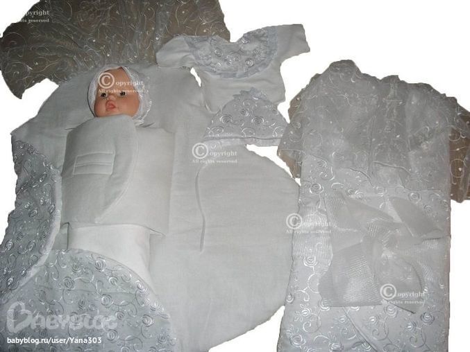 Наряд на выпискуДолго я мучалась с вопросом в чём бы я хотела на выписке преподнести наше чудо мужу и родным. Сегодня вспомнила нашу свадьбу и взгляд моего мужа когда он увидел меня в белоснежном платье и фате, он смотрел на меня как на королеву, в этом взгляде было много всего любовь, нежность, восхищение... И пришла я к выводу, что всё таки для нашего первого ребенка хочу конверт, чтобы он был как принц или принцесса, чтобы муж получил этот шикарнейший подарок в роддоме и мог спокойно взять его на руки. Я представляю КАК ему будет страшно навредить этому маленькому созданию, тем более он безумно боится маленьких детей и никогда не брал их на руки, а в конверте ребенок всё же выглядит объемнее и безопаснее чем в комбезиках и пледиках.