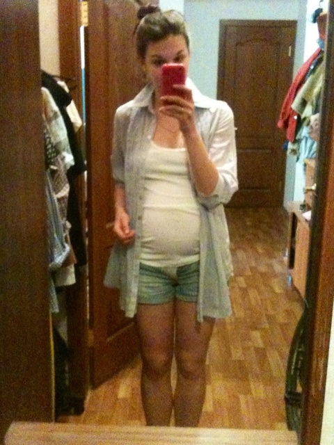 ой какая вы миленькая и худенькая беременная..я похожа на бегимота...вообще себе не нравлюсь и избегаю зеркал...))Легко вам доходить и родить)))