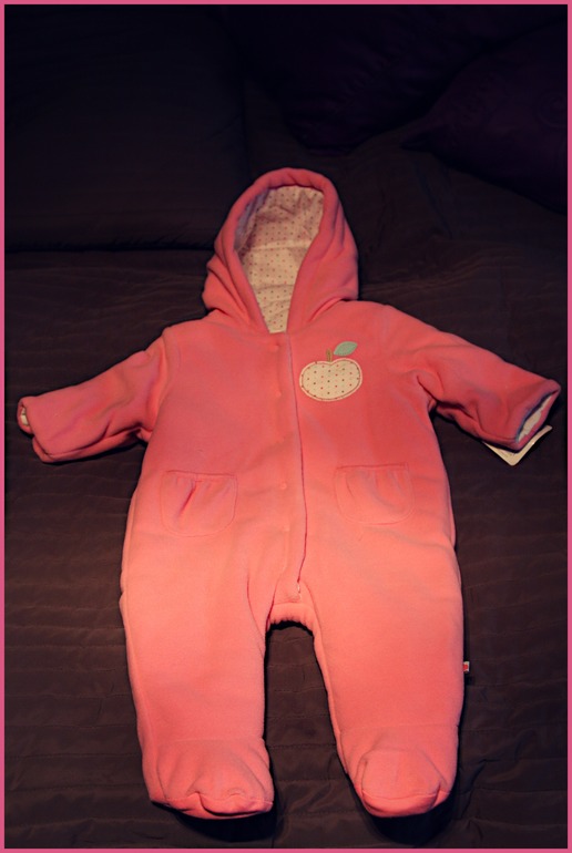 Так хочется уже положить в нее нашу принцессу и идти гулять. Муж сюрпризом, заказал к коляске подстаканник (для меня-кофейного маньяка), и сумку для мамы, тоже Bugaboo. Радости моей не было предела - сумка офигенная, большая, удобная, с кучей карманов. Порадовало наличие термокармашка для бутылочки. Еще мною был совершен набег на Gap и Mothercare, где были куплены эти замечательные вещички. Розовый комбез - флисовый, такой мягонький. Бодик Gap Me+Dad=Love, был куплен специально для папочки, папа был очень доволен) Увидев белую повязочку на головку - не смогла устоять, очень уж мимишная. Полотенчик с уголком и варежкой "Медвежонок" давно приглядела в Mothercare, и вот купила. Еще в нашем арсенале появилась ванночка, и моя мама укомплектовала нам будущую кроватку, подарила набор: Наматрасник, одеялко, подушка и комплект белья с бортиками и кармашком, фоткать его не стала, потом, как привезут кроватку, все застелю и сфотографирую)
