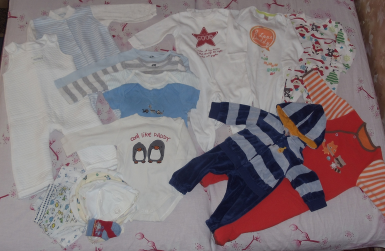 В общем, запасы растут! Пока все в мешочках томится, но, думаю, недельки через 2 определю вещи в комод, а что побольше размерчиком - в шкаф. А еще осталось дождаться, когда придет ко мне плед-одеяло на выписку и всё - буду довольна и счастлива, все мои бб-покупки будут завершены - получены, распакованы и защупаны до складочек