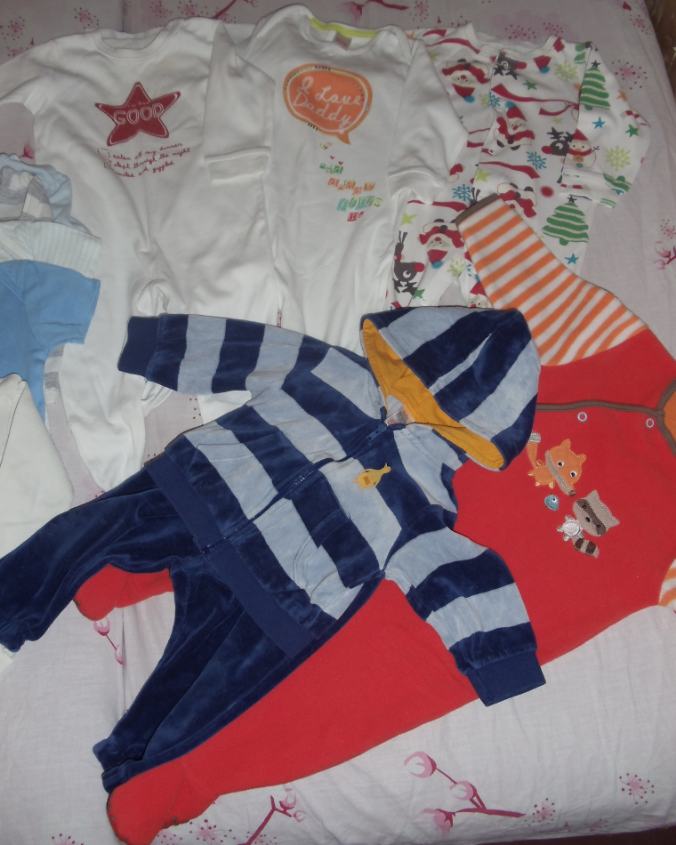 А эта кучка на возраст 6-9 месяцев. Именно из-за этих вещей не смогла пройти мимо пакета. Понравились) Надеюсь, новогодний слип нам будет в самую пору в новогоднюю ночь)))