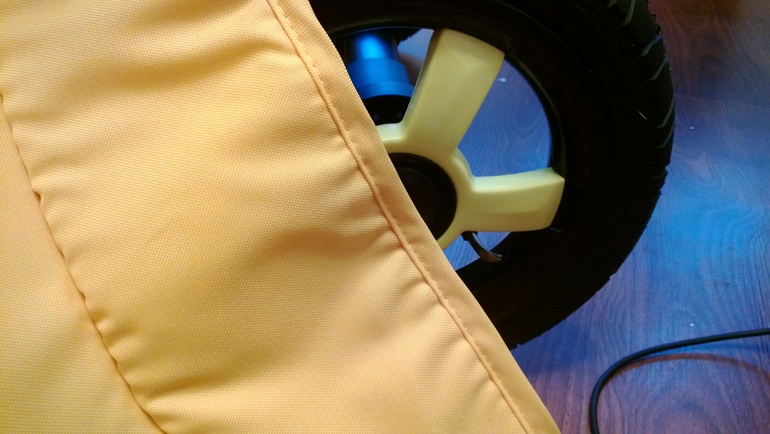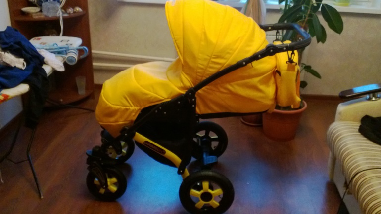 Единственное что,цвет колес и цвет ткани отличается.....они желтые,но разные оттенки.....на фото видно,хотя плохо......может это только я придираюсь так......