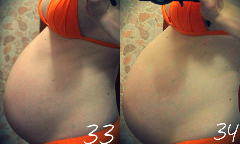 А вот и наш пузик)Для сравнения 33 неделька,но вроде мы не подросли)