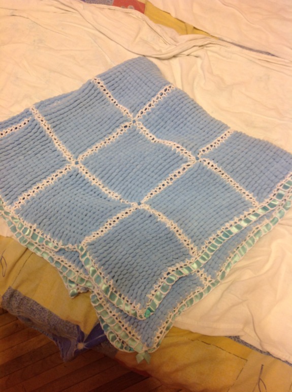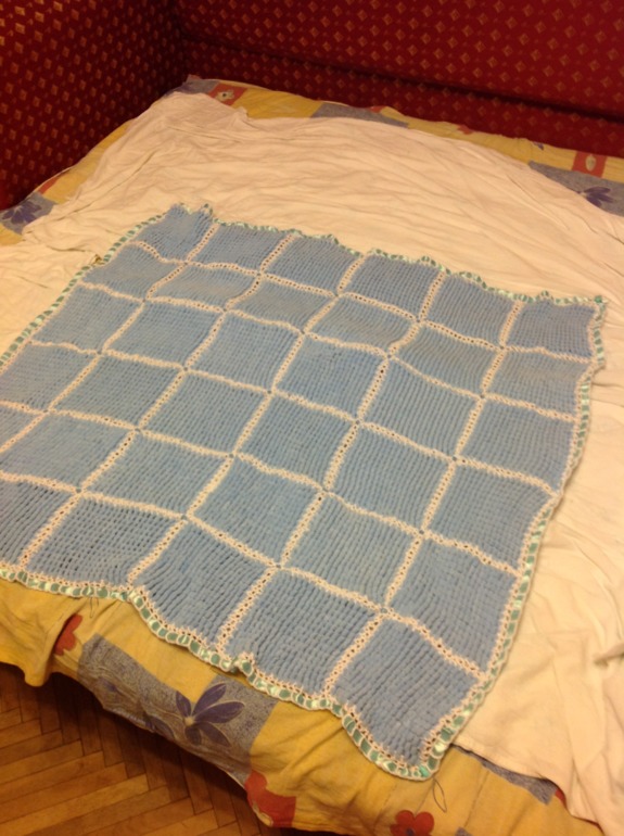 Пледик на выписку тоже успела довязать,чему несказанно рада: