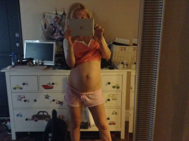 Не заметно ) Считайте, что это вода и малышка) Я себя так успокаиваю..Хотя самой уже в зал сходить не терпится..