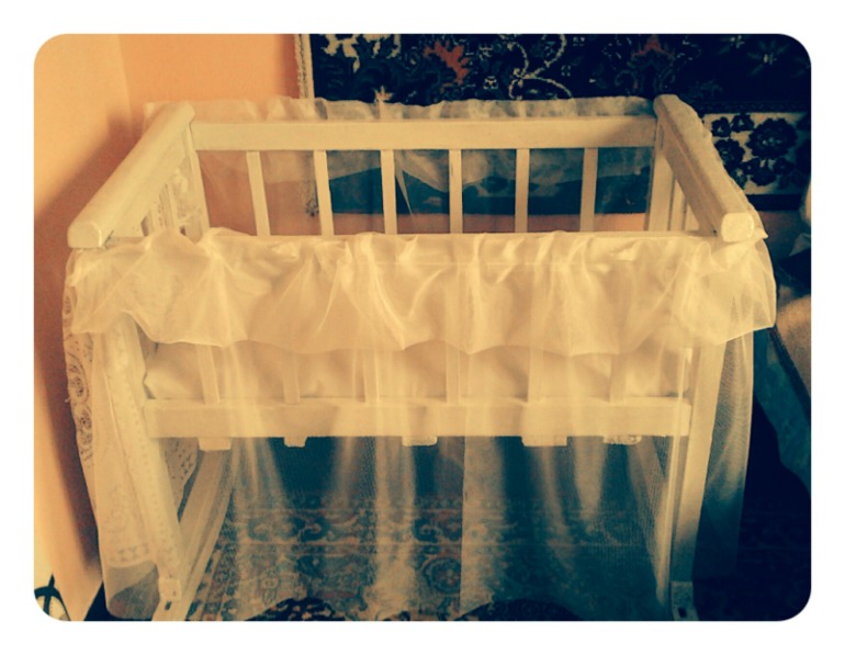 Мебель для малыша (стульчики, шезлонги и проч.)Так как я у родителей, буду находится всего два месяца после родов. Вопрос о покупке отпал автоматом. Я считаю не разумно покупать крупно габарит на столь короткий период. Кроватка в Киеве у нас куплена. А здесь есть кроватка еще в которой я росла, на время когда будем гостить у бабушки:-) Но на первые месяцы решили воспользоваться люлькой. Она очень древняя, ее дед смастерил еще для моего отца, то есть ей уже полтинник стукнул:-) В этой люльке вырос отец, его сестра, затем мой старший брат, собственно я и двоюрдный брат:-) И теперь пришло время опробовать ее моей сладкой девочке:-) Матрас мама сшила сама, а наполнили его морскими водорослями с Азовского моря. Отец их специально привез еще весной, высушил и подготовил для крошки:-) Так что вот такая нестандартная и бюджетная у нас люлька:-)