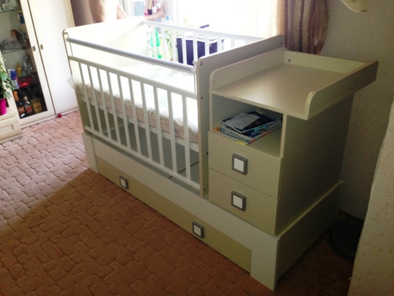 Кроватка стоит против света, поэтому бежевый поучился какой-то зеленоватый.