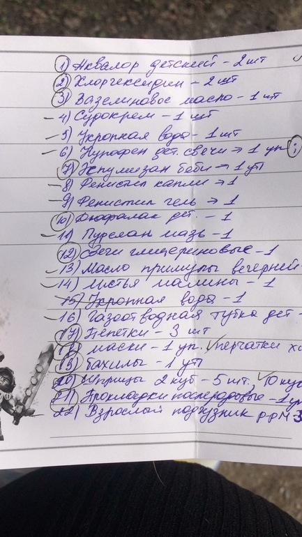 О! Я сегодня 3 аптеки прошла, чтобы свой список закупить)) у меня там 22 пункта получилось и для малышки и для меня