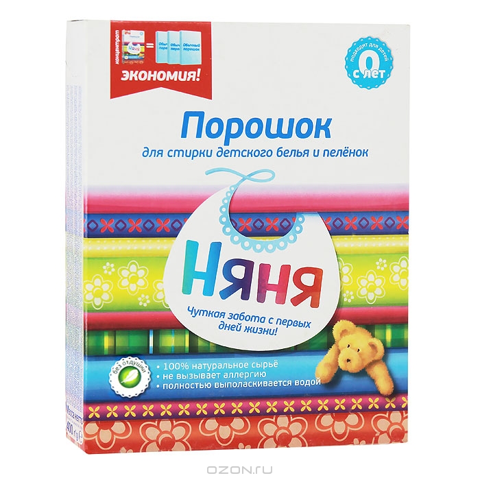 у нас будет только обычное твердое детское мыло, детский крем и вот такой порошок. Я в принципе против ополаскивателей и кондиционеров, они же не вымываются из белья до конца...
