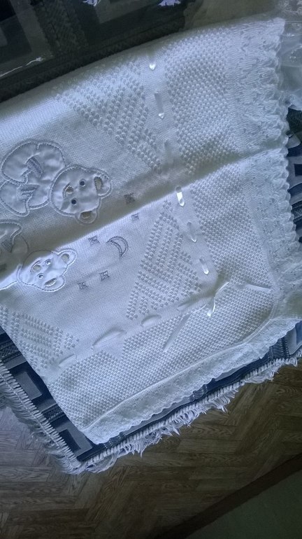 Знаете,под пледом все-равно ничего видно не будет,поэтому самое главное-плед и шапочка)насчет кружев думаю что не натрет.я своей еще и бисером обшила по глупости и ниче не натерло