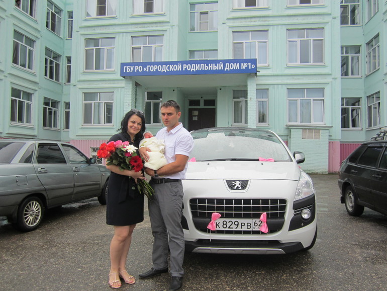 Наш папуля нам с дочей подарил настоящий цифровой фотик(моя мечта)чтобы запечатлеть каждый день нашей новой жизни, и Боже мой,под окна роддома пригнал новую машину(на фото с розовыми бантиками)!!!