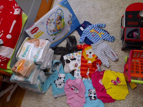 Одежда, игрушки, техникаНачала делать покупки, как только узнала, что ждем девочку, где-то на 20 неделе. Когда ты шопоголик, то дети - отличное оправдание! Спасибо мужу, который терпеливо это все переносит и не ругает. Итак к 25 где-то неделе мы имеем небольшой запас одежек с Некст, Картерс и Смик, мои самые любимые тм, качелю-шезлонг Tiny Love, такая же точно была у старшей дочки и я была с ней просто счастлива, очень удобный девайс! Еще куча одноразовых пеленок, парперсы по 3 пачки 1,2,3 размера и коляска Tako Modern Line, опять же проверенная со старшей дочкой, не стали покупать другой фирмы.
