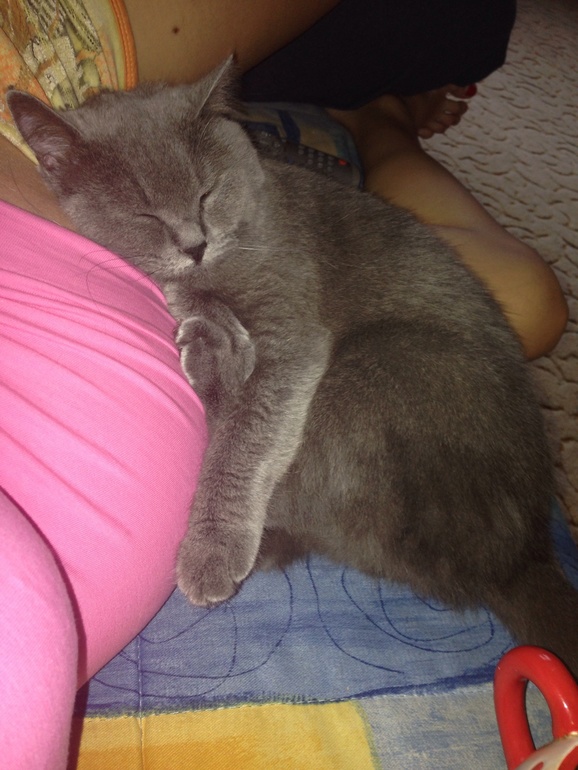 Ей тепло и приятно. А малышу внутри еще лучше. Мама на позитиве. Кошки энергетику отрицательную хорошо снимают. Жаль что моя киса ушла, как только я забеременела. (((