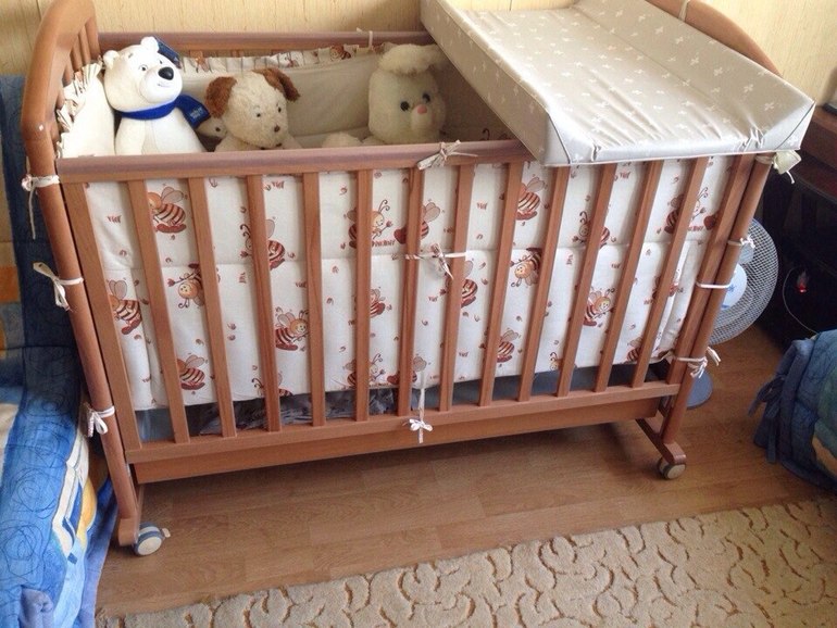 а вот собственно причина, по которой кроватку застилать мы пока не хотим)