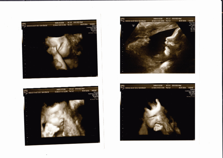 Футболист)))Не захотел в этот раз показывать личико,то одной ручкой закрывал,то другой кулачок в ротик пытался засунуть,отворачивался и ни в какую,а в конце вообще язык показал и спрятался,но это мы уже не в 3д,а в простом узи изображении рассмотрели)))ПДР ставят на 1 октября(было 7ое),сказали примерно в середине сентября уже ложится в роддом на ПКС(я сама так хочу,да и первые роды тоже были КС)Вес уже 74,5 это получается +17 кг