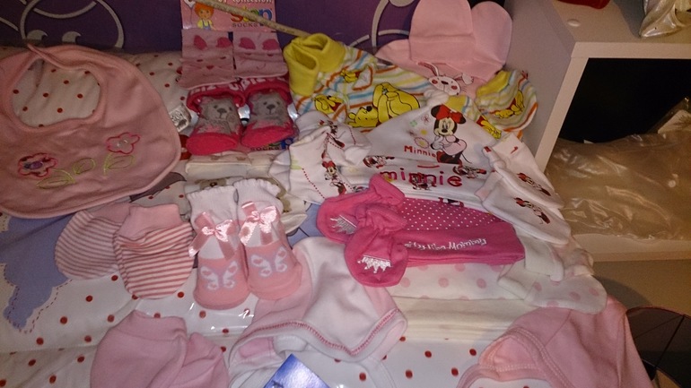 Итак вещи покупалось все спонтанно никаких расчетов я не делала вообщем узнали пол и по чуть чуть стали покупать, кое что мама с Кипра привезла, если будет чего-то не хватать магазины не убегут от нас, да и на рождение наверное надарят всего, как и с сыном было