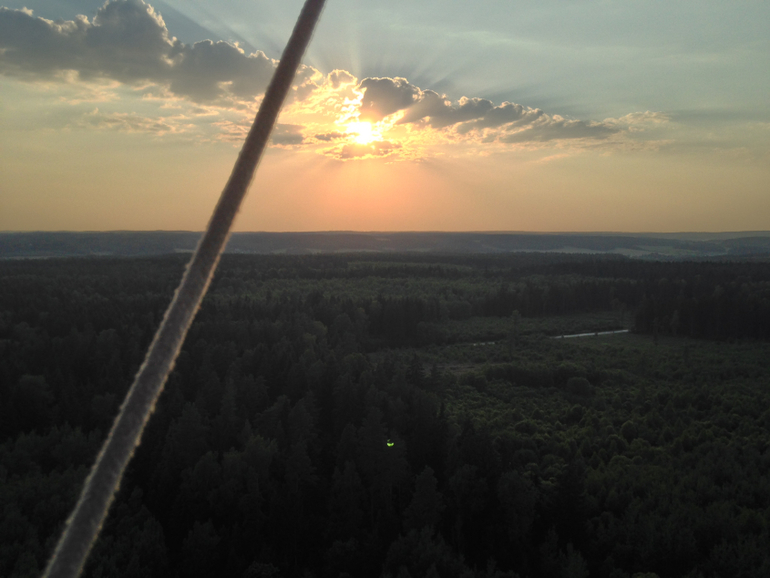 Могу сказать одно - это на самом деле не страшно. Вообще. Главное - не прыгать и не дрыгаться особо активно, а то корзина начинает шататься, и становится несколько не по себе. Ну и ещё конечности высовывать наружу тоже не стоит, да за трубки газовые хвататься. А в целом - очень здорово. Закат с высоты 370 метров я ещё никогда не наблюдала) Выше наш пилот не согласился подниматься, учитывая интересность моего положения. И посадка, кстати (которая волновала меня больше всего), прошла более чем хорошо - я на самолёте ни разу в жизни так мягко не приземлялась)
