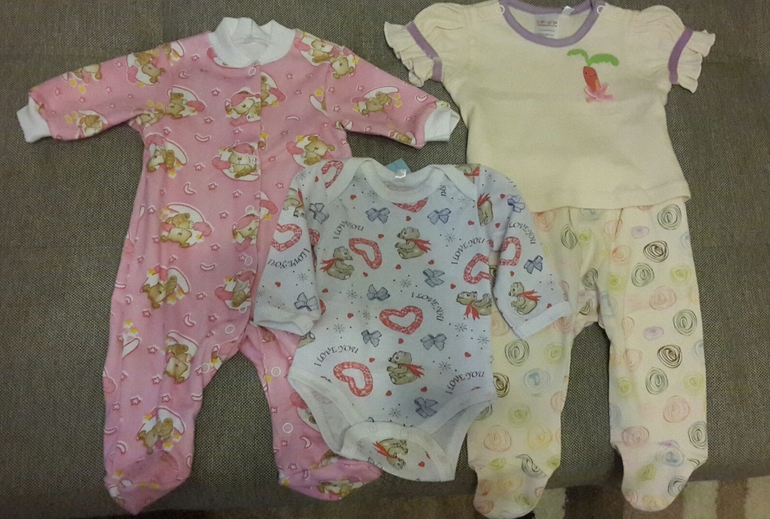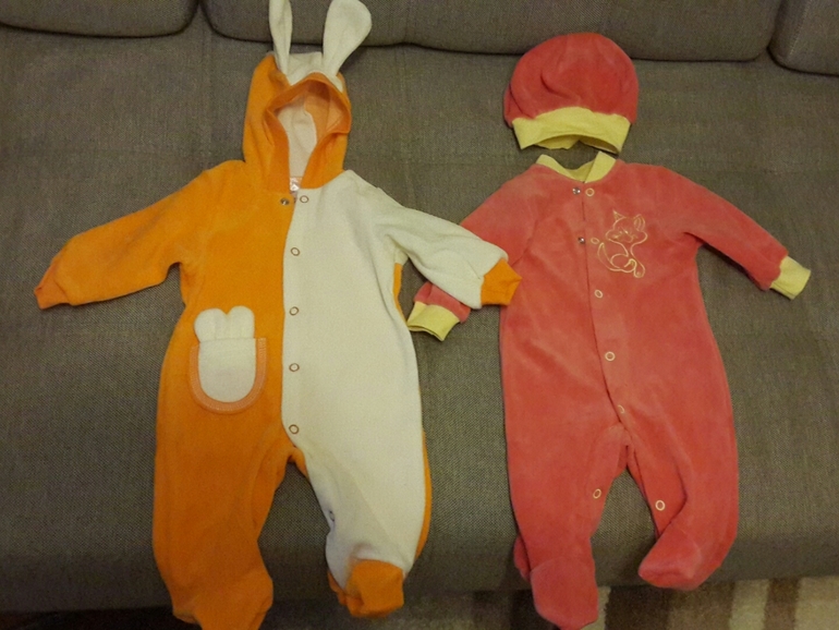Понравились два велюровых комбезика (62 размера) - зайка покорил ушками и яркой расцветкой, второй - милой шапочкой и сочетанием красного и желтого. Там же взяла футболочку и веселые ползунки) Потом зашла в Дочки-сыночки...крохотные боди за 300р, песочники по 400-500р меня немного шокировали. Надо привыкать, что детские вещички так стоят. Планировала брать нейтральные цвета, но очень уж понравился розовый слип с мишками)) Кстати 56 размера, которого было очень мало в ассортименте. Боди тоже такой милый и тоже 56 размера. Вот пока и все. Получила огромное удовольствие и такие неописуемые эмоции, ведь эти малюсенькие вещички для нашей любимой крохи!