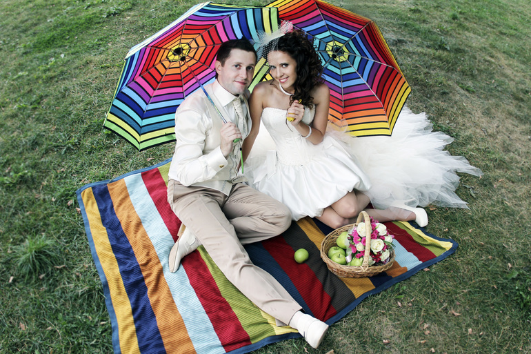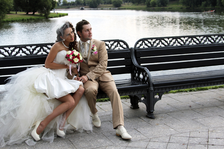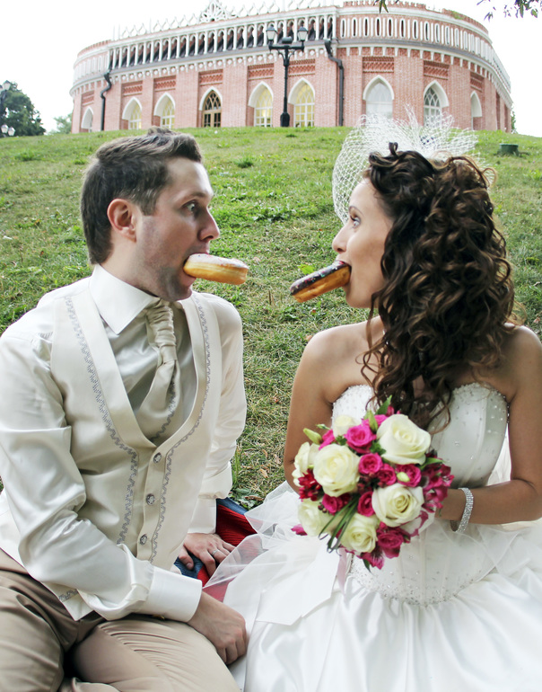 вся свадьба прошла в режиме непрекращающегося веселья, танцев и приколов....а потом в разгар прогулки ливанул сильнейший дождь!!!!все промокли, и как результат- в загс мы с мужем пришли мокрые, грязные, я- в рваных колготках(так как снять или поменять было не вариант-пришлось бы полностью снимать платье), с чееееееееерным от грязи шлейфом, с полураспустившейся прической и потекшим макияжем (исправляла мне его сестра в туалете загса-она художник, так что подрисовать все размазанное сумела на отлично!)