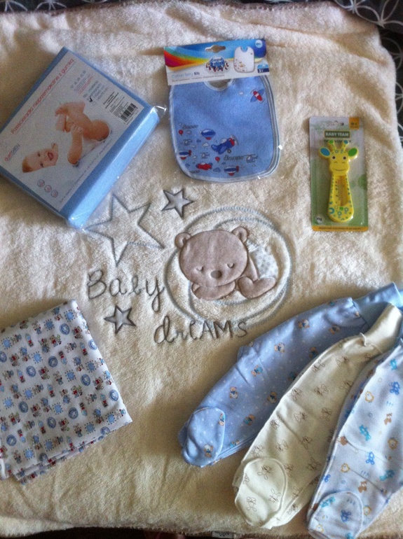 Это наши небольшие покупочки, извините за качество фото! Теплое зимнее одеялко, ползуночки, слюнявчики, градусник для воды, пеленочка и непромокаемая простынь на резинке. Еще так много нужно купить! И пора уже заниматься стиркой!