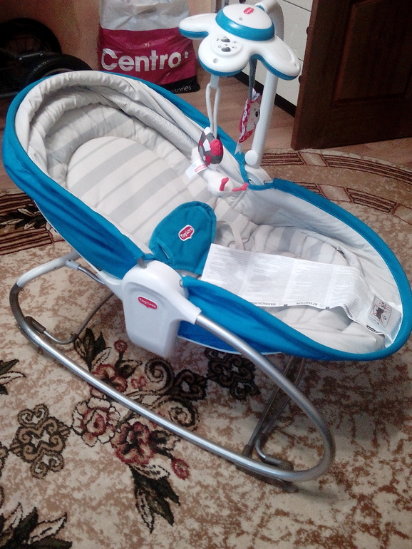 Шезлонг ТИНИ ЛАВ 3 в 1 собрали сразу же, очень хотелось посмотреть на него в реале))) В принципе я довольна, надеюсь сыночек тоже оценит. Нужно докупить еще батарейки,чтоб посмотреть, как работает мобиль и вибро...
