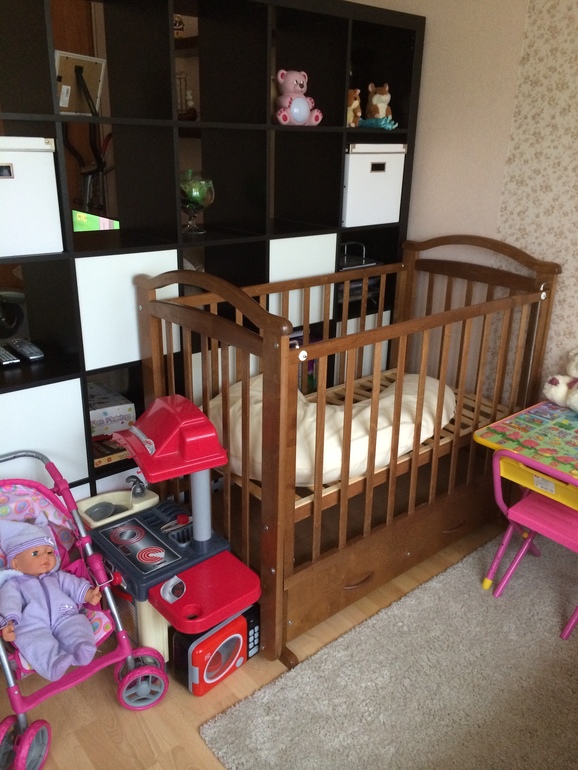 Кроватку покупать не стали, привезли с дачи от первой дочки, на выходных муж собрал, обработала уксусом от сырости, надеюсь за 2 месяца вся вонь выветрится.