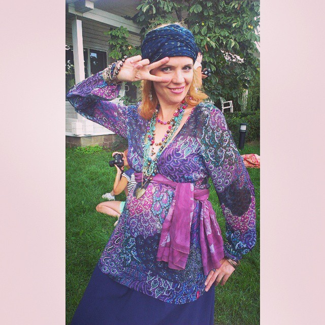 О! только сейчас узнала, что ты беременная))) где значок?:)))Очень потрясный наряд))
