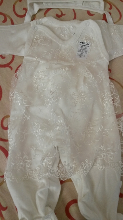 Выписка только в декабре,но я не смогла удержаться от этой красоты))Ну а сверху естественно будет что то тепленькое.Кто брал такой наряд,как он на детке сидит ?всего 50см