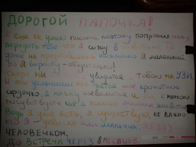 сижу на работе, еле слезы сдерживаю. Так трогательно. Молодец. Мы маме письмо писали от имени малышки, когда сообщали о том, что у нее будет внученька))