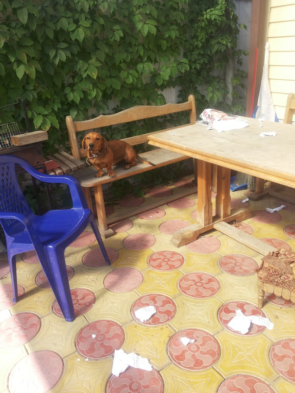 А еще очень люблю нашу собаку))) как не выйдешь с утра на улицу, так что-нибудь новенькое съест, в этот раз журнал и стульчик (нижний правый угол)