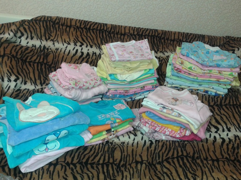 Одежда, игрушки, техникаОй, по счастливой случайности наткнулись с мужем на распродажу детской одежды... там было СТОЛЬКО людей, что я успевала только хватать, хватать и хватать то что попадало в руки, все вещи по великой случайности по 50 р, костюмы, велюровые бодики, ох.... принесли мы оттуда две сумки вещей, на тот момент при чем я не думала о том "а вдруг у меня мальчик)", я хватала все что мне нравится, если что подарю потом кому-нибудь.... вещи разного размера, в основном 62(это я увидела дома когда разбирала их)... некоторые вещи вообще на вырост, велюровые штанишки(на фото их нет), свитеры(цена их была 650,900), за 50 я точно такое не куплю даже в интернете!... в общем вот часть фотографий... потрачено чуть больше 2000...фото ниже